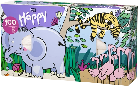 Dvojvrstvové vreckovky Bella Baby Happy sú vyrobené z veľmi mäkkého a na dotyk príjemného papiera, ktorý nedráždi detský noštek. Praktické balenie uľahčuje používanie vreckoviek a farebné potlače zvieratiek priťahujú pozornosť dieťaťa.