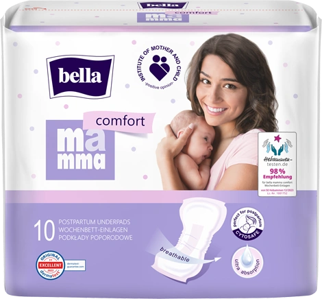 Pôrodnické vložky Bella Mamma, určené pre ženy po pôrode, sú priedušné a ich dlhá a široká absorpčná vrstva poskytuje účinnú ochranu aj v ležiacej polohe. Jemný, nešuštiaci povrch nespôsobuje podráždenie citlivých intímnych partií a zaisťuje pocit výnimočného komfortu. Pre maximálnu bezpečnosť žien po pôrode sú naše vložky dermatologicky testované, čo potvrdzuje certifikát Dermatest, a získali pozitívne stanovisko Ústavu matky a dieťaťa.