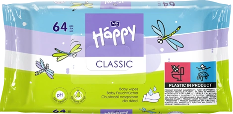 Vlhc̆ené obrúsky Bella Baby Happy Classic, vyrobené z jemnej embosovanej netkanej textílie, dôkladne čistia a ošetrujú detskú pokožku, pričom zachovávajú jej prirodzenú ochrannú bariéru. Jemný roztok, obohatený o vitamín E a alantoín, ju navyše účinne hydratuje. Neobsahujú etylalkohol ani parabény.